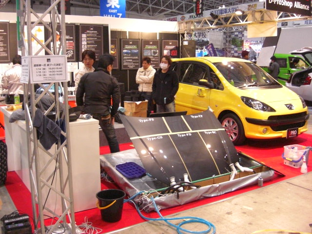 2日間、同じD-PRO加盟店メインストリートさんで磨いたプジョーがやっと終わり、オートサロン会場の幕張メッセへ運んできました。