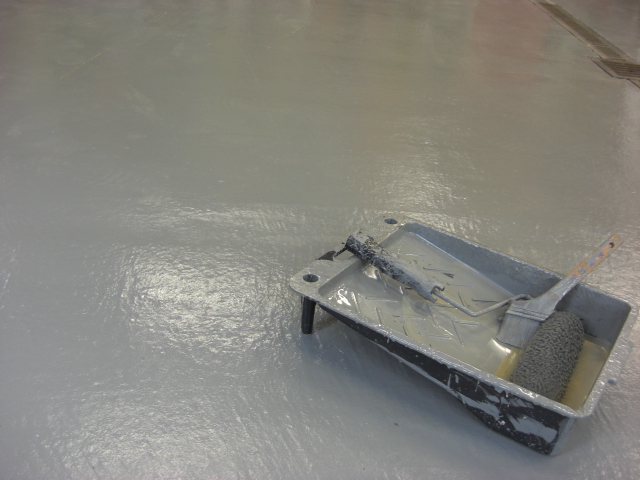 作業場の床のペンキをお客さまの予約を見て半分づつ