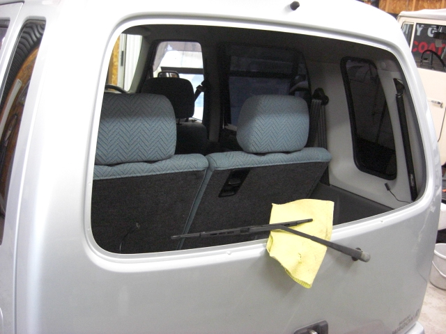 リアのガラスは、脱着して施工します