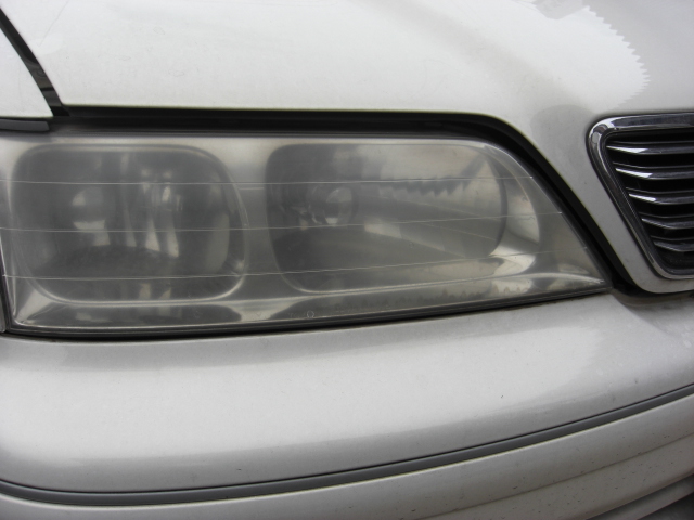 ヘッドライトがあまりにくもってしまっているのでポリッシュしました。向かって右がポリッシュ後。